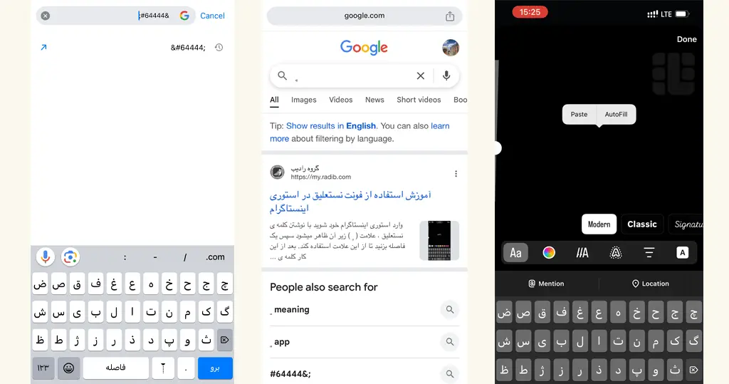 فونت نستعلیق آنلاین در اینستاگرام آیفون