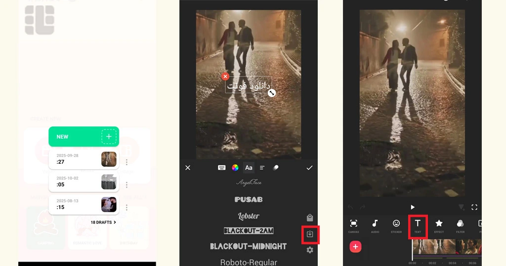 پیش از شروع مراحل استفاده از فونت در اینشات، لازم است فایل فونت مناسب از قبل روی گوشی شما آماده باشد. چه قصد استفاده از فونت نستعلیق برای اینشات ایفون را داشته باشید و چه بخواهید مسیر دانلود فونت نستعلیق برای اینشات اندروید را طی کنید، این اپلیکیشن فونتهای فارسی را بهصورت پیشفرض ارائه نمیدهد و فقط فونتهای واردشده بهصورت دستی با فرمت TTF یا OTF را میشناسد. پس فایل فونت را در مسیری در دسترس ذخیره کنید. مراحل استفاده در ادامه آمده است: