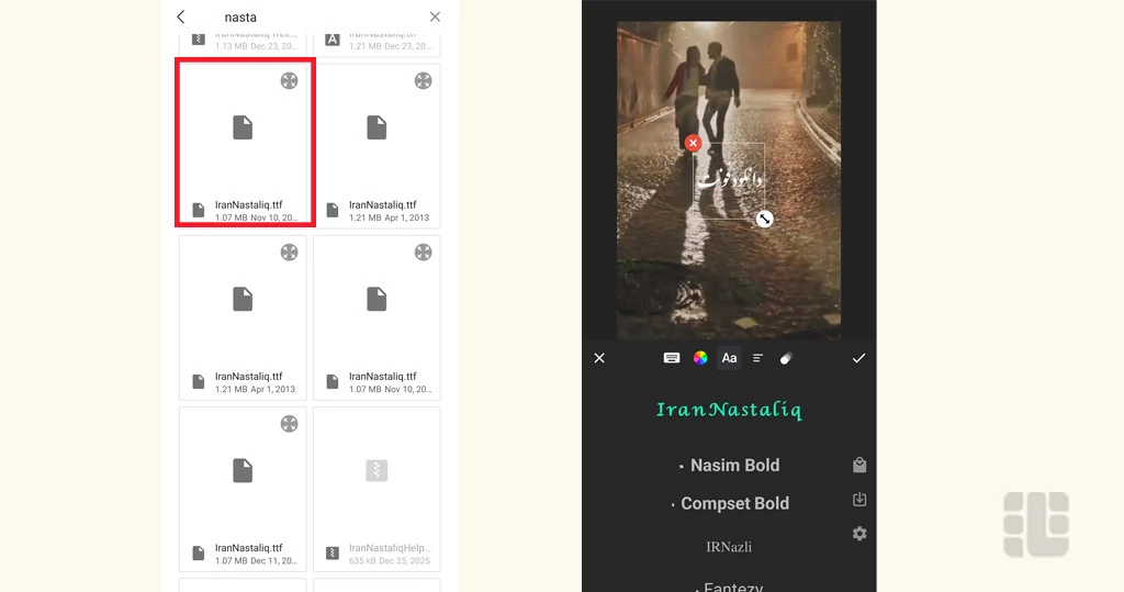 آموزش مرحلهبهمرحله استفاده از فونت نستعلیق برای اینشات
