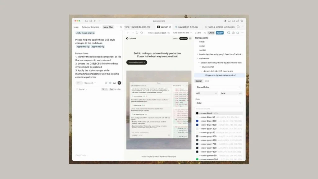 براساس گزارش‌ها ویژوال ادیتور ابزار Cursor برای طراحی این ویژگی‌ها را دارد.