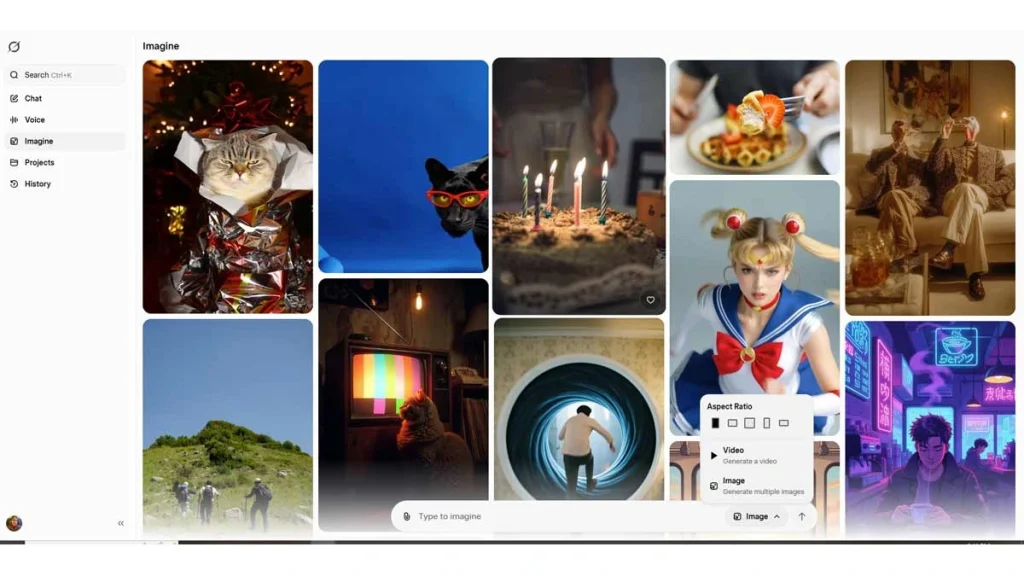 در نسخه جدید، هنگام ورود به بخش Imagine، یک منوی کشویی (Aspect Ratio) وجود دارد. کاربر میتواند پیش از فشردن دکمه Generate، نسبت تصویر دلخواه خود را انتخاب کند؛ بدون اینکه نیازی به توضیح آن در متن پرامپت داشته باشد.