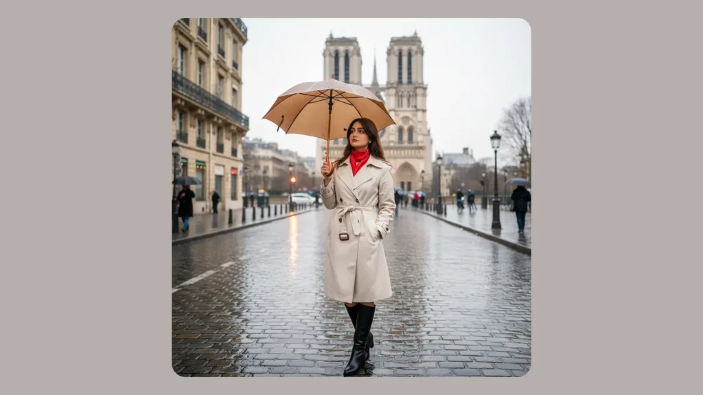 حالا Nanno Banana در همین مسیر به کاربران اجازه میدهد سفرهای واقعی یا خیالی را با رنگ و حس تازهای زنده کنند. در این هم خروجی Nano Banana با خیابانهای بارانی پاریس: