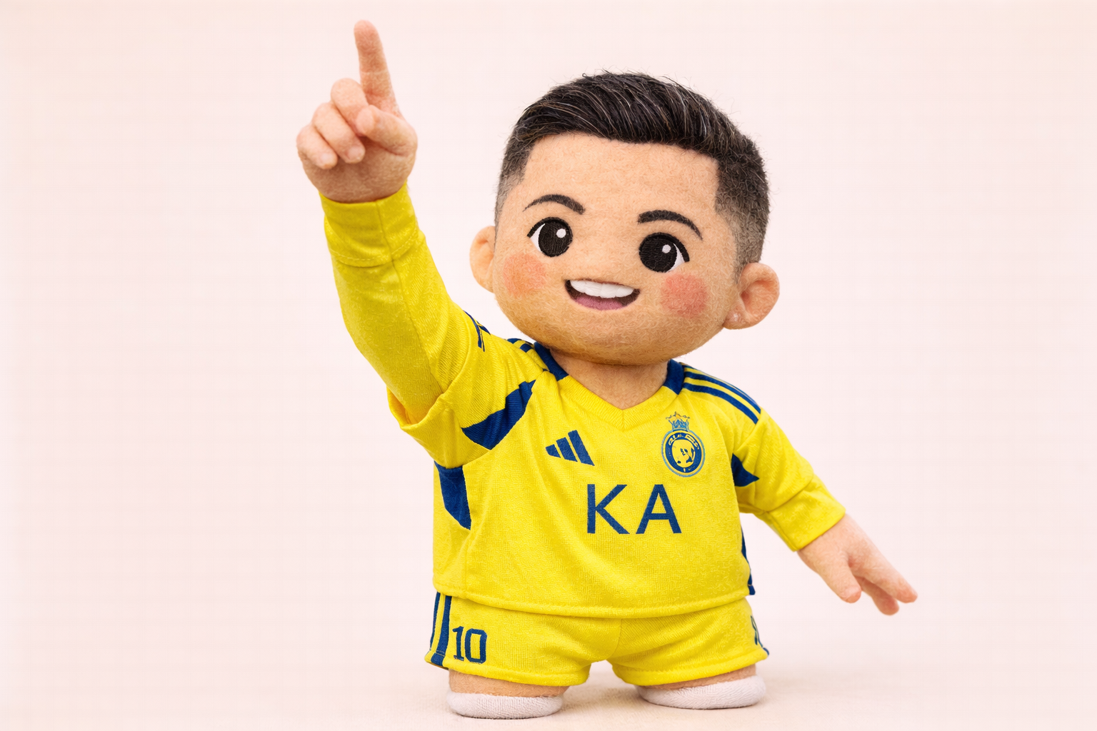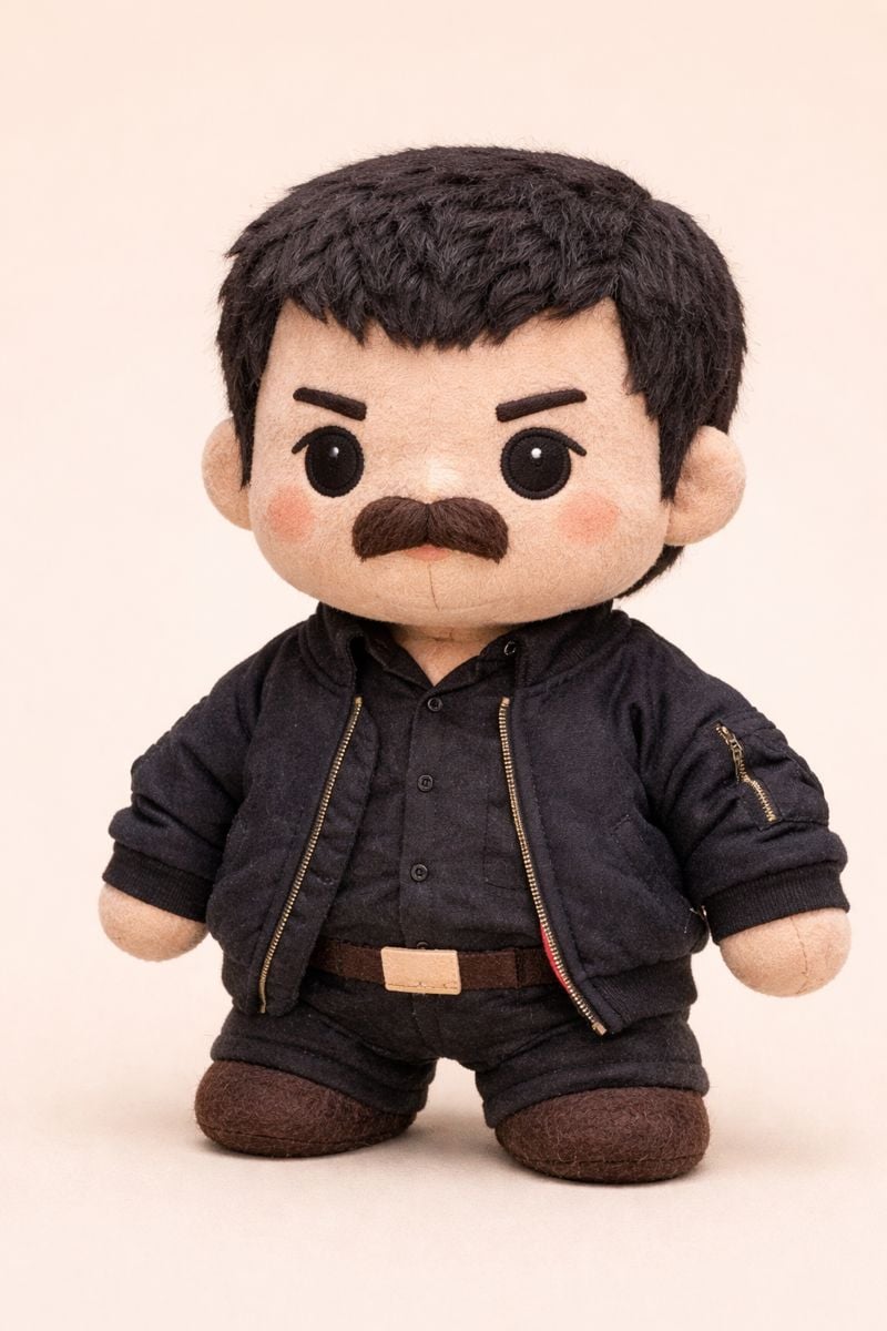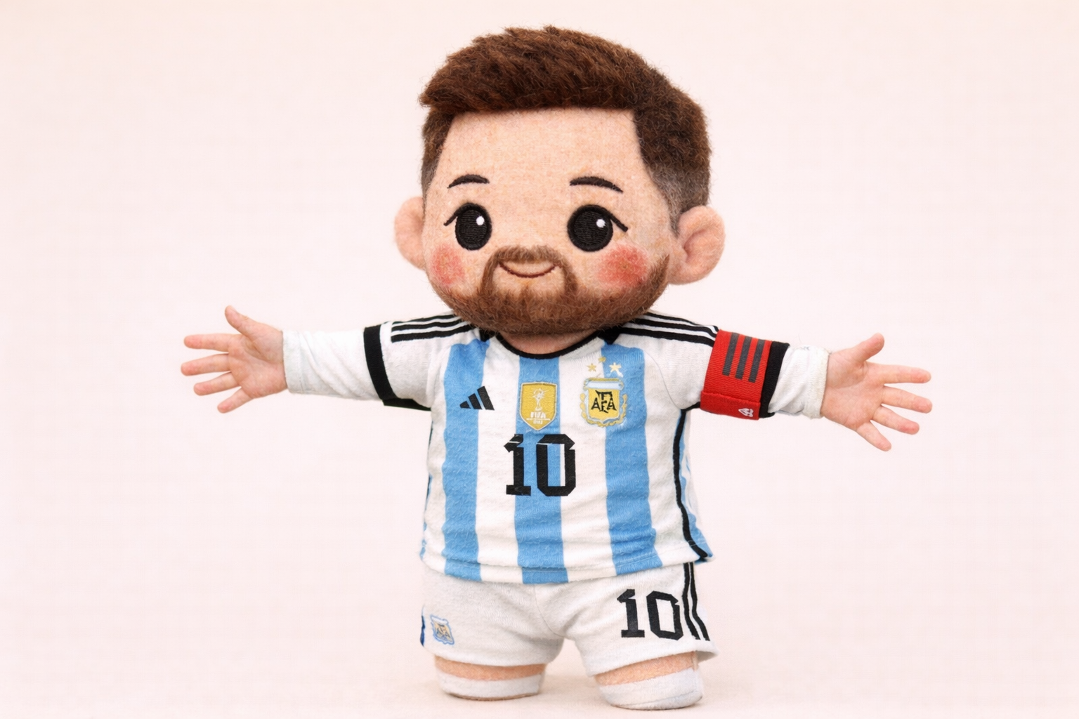 Transform the subject or image into an adorable plushie-style form with soft textures and rounded proportions. If a person is present, preserve recognizable traits; otherwise, reinterpret the object or animal as a cozy stuffed toy using felt or fleece textures. Give it a cozy felt or fleece texture, simplified shapes, and gentle embroidered details for the eyes, mouth, and features. Use a warm, pastel or neutral color palette with smooth shading and subtle seams, like a handcrafted stuffed toy. Keep the expression friendly and cute, with a slightly oversized head, short limbs, and a cuddly silhouette.The final image should feel like a charming, collectible plush toy — cozy, wholesome, and huggable, while still recognizable as the original subject.